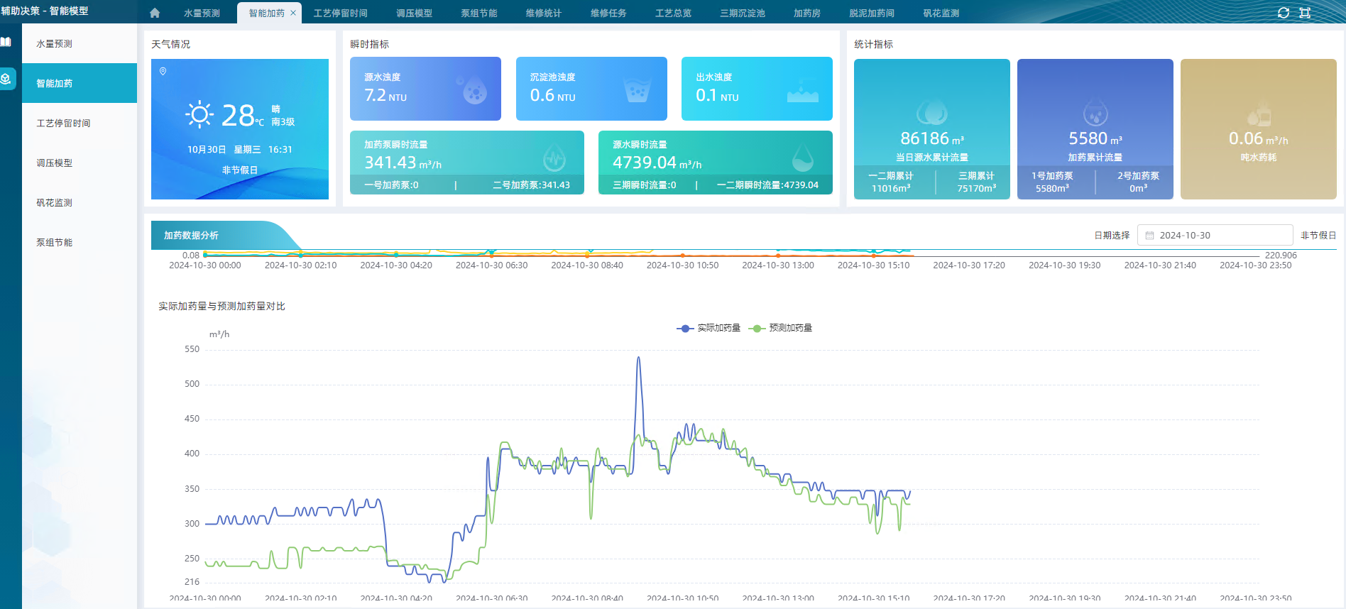 以多維度統(tǒng)計圖表的方式展現(xiàn)績效結(jié)果,識別凈水廠運行管理薄弱環(huán)節(jié),為水廠運行管理優(yōu)化提供豐富的數(shù)據(jù)展示企業(yè)門戶和決策支持,使得管理者的決策更加綜合、合理、可行,形成智能化、科學(xué)化決策,為全廠可視化、精細化、智慧化運營提供數(shù)據(jù)依據(jù)和強有力的支撐。